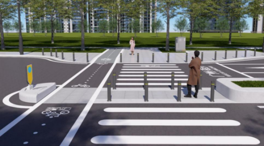 交通,是城市的脉络,关乎着人们的出行体验!《设计导引》在交通设施建设方面提出了一系列贴心且实用的举措。新建道路将非机动车道与人行道分离,旧路改造拓宽非机动车道。渠化岛采用平面坡设计,实现无障碍过街。街区道路和非机动车道,使用透水沥青,骑行更舒适。复合斑马线助力人车分流,夜间行车还有栏杆端头警示标志保驾护航。